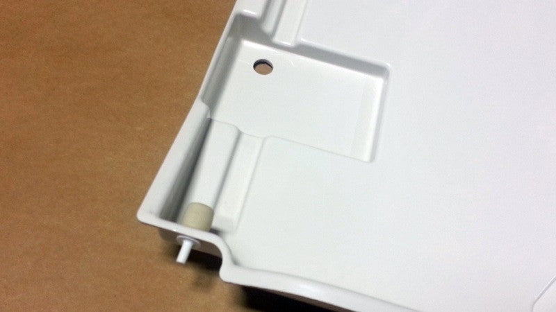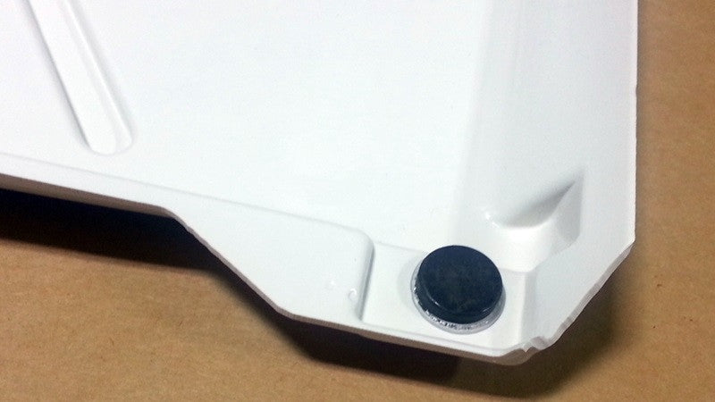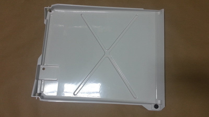 This is an OEM white plastic water curtain, complete with hangers and magnet. This part swings freely on the front of the evaporator to indicate when the bin is full or empty and to terminate the harvest cycle.