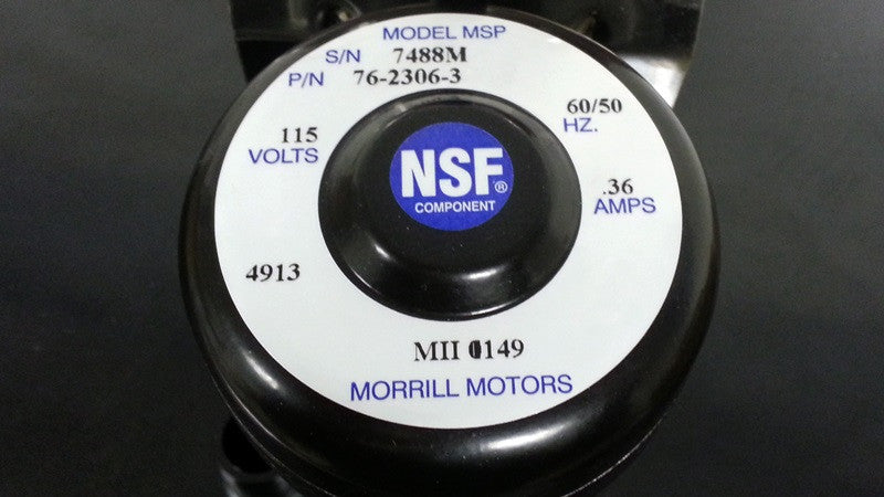 Manitowoc water pump, 115v 50/60 hz .36 Amps, OEM by Morrill Motors, will fit most Q Series ice makers and older. Manitowoc part number 76-2306-3 or 7623063.