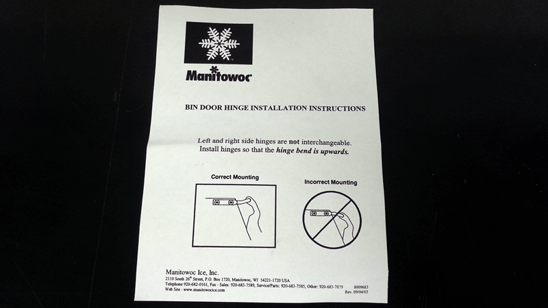 This is a set of left hand and right hand bin door hinges, fitting C700 and C730S Manitowoc storage bins. Ships with instructions for installation.