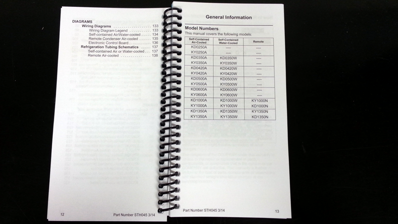 This service tech handbook for Koolaire ice machines covers all Koolaire models, including air-cooled, water-cooled, and remote condensers. Made by Manitowoc, this Koolaire handbook contains wiring diagrams, refrigeration pressures and weights, along with maintenance information and diagnostic guides. This is a must have book for anyone working on a Kool-Aire ice machine, find out cycle times, refrigeration piping schematics, and more.